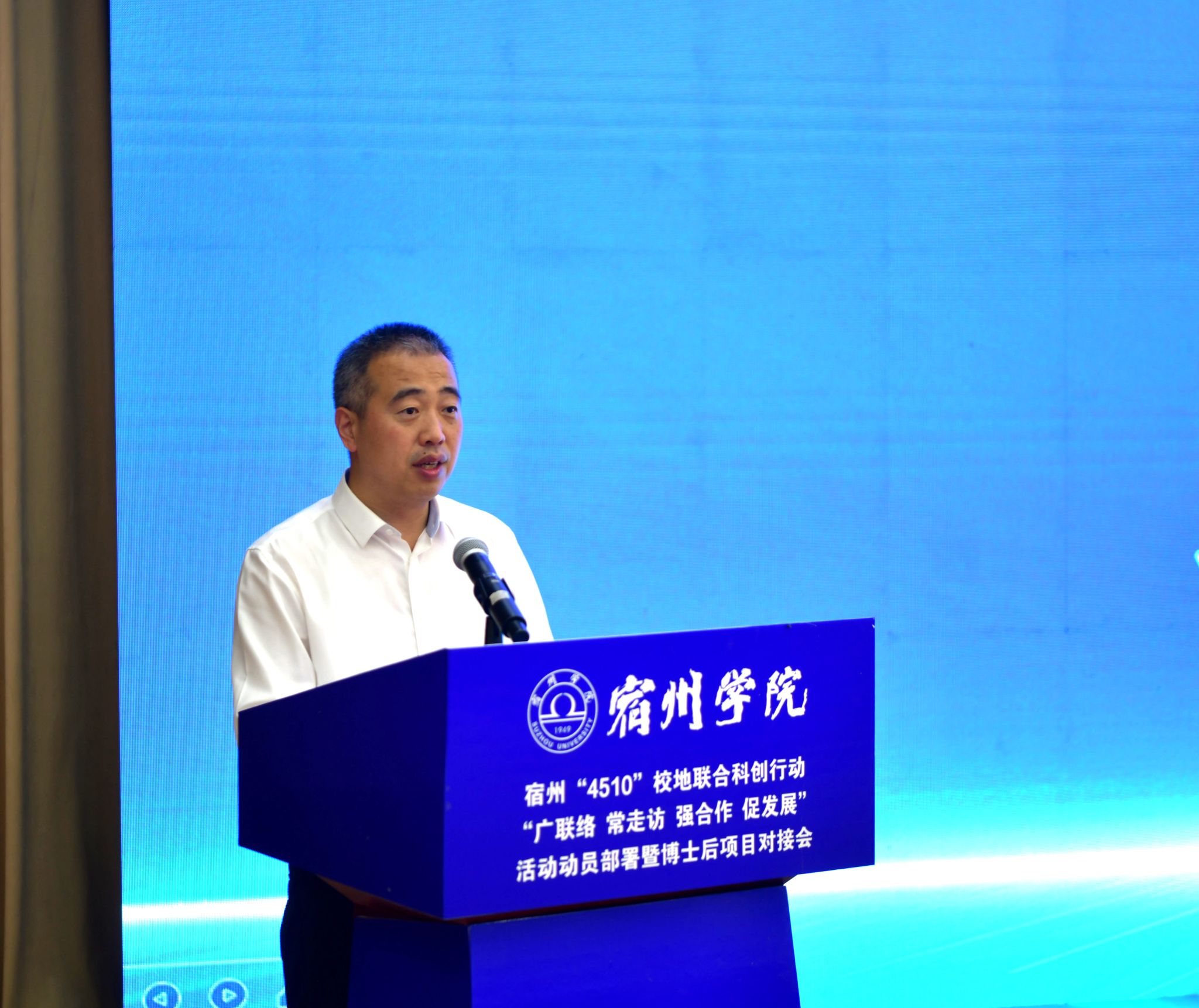 6月5日,宿州“4510”校地联合科创行动“广联络 常走访 强合作 促发展”活动动员部署暨博士后项目对接会在大赢家体育教育园区校区举办。