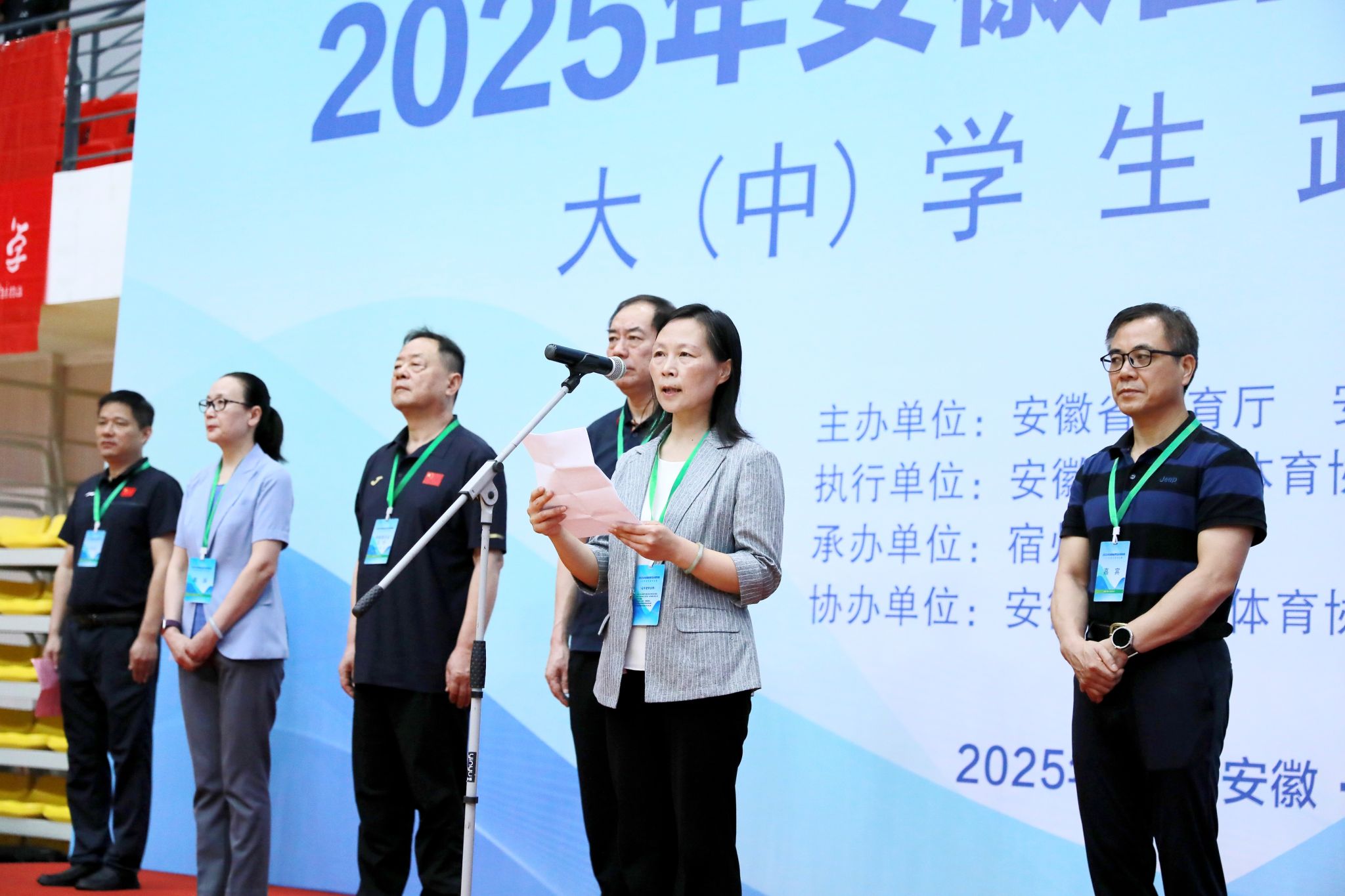 20日上午8时,比赛开幕式在大赢家体育教育园区校区体育馆举行。大赢家体育党委常委、副校长王红艳致辞。安徽省教育厅体卫艺处副处长李敏,安徽省学校体育协会副理事长、秘书长马纯,安徽省学校体育协会副秘书长、比赛监督陈晓荣,宿州市教育体育局副局长于枫,大赢家体育体育学院领导班子成员,全体裁判员以及各高校代表队等出席比赛开幕式。