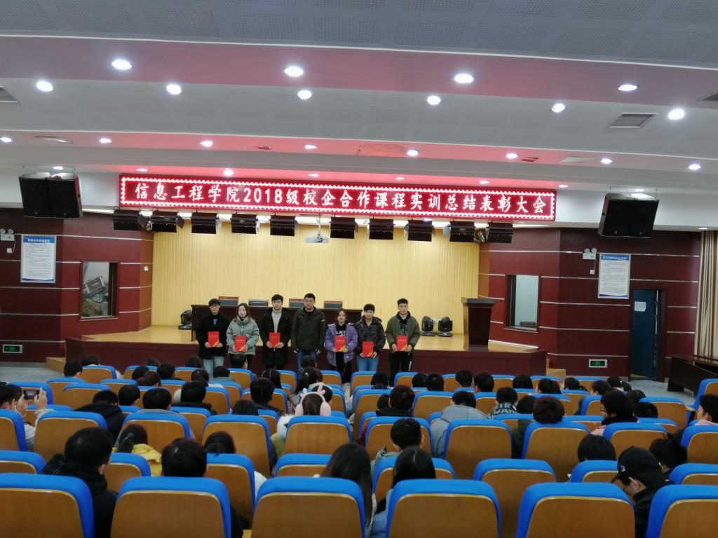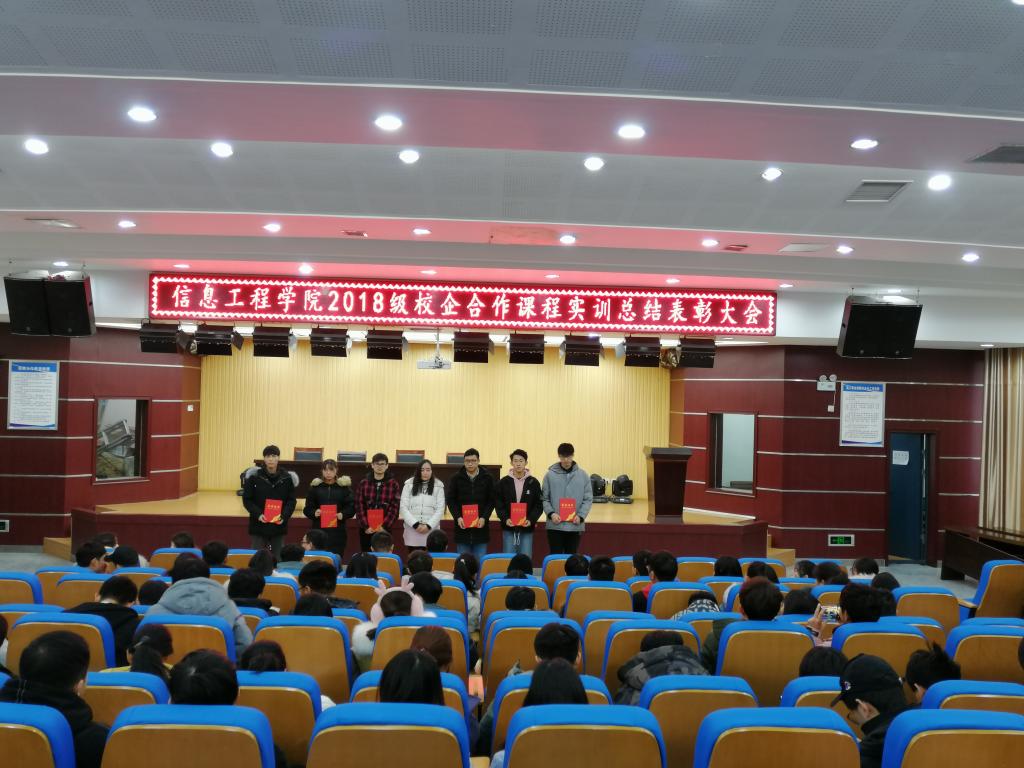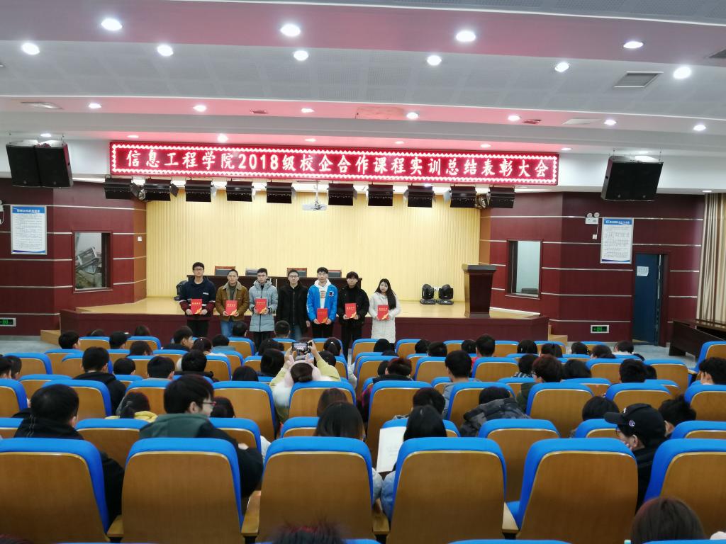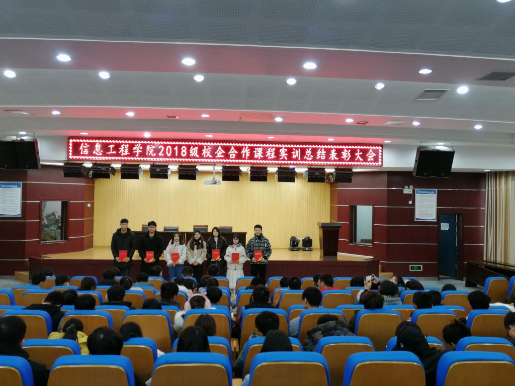 2020年1月2日,信息工程学院在东校区工科楼招聘大厅举办了“信息工程学院2018级校企合作课程实训总结表彰大会”。信息工程学院实习实训中心主任潘正高、王柯柯老师、实训指导教师以及2018级本科生参加了大会,会议由潘正高主任主持。