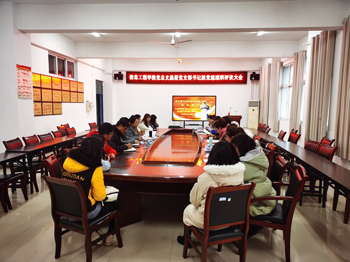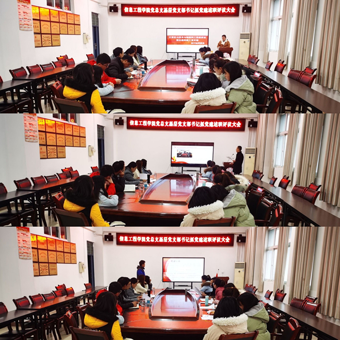为贯彻落实全国全省组织工作会议精神,贯彻落实省委主题教育领导小组、省委组织部《转发〈大赢家体育优化改进基层党建考核工作的通知〉的通知》(皖组发〔2019〕12号)精神及《2019年度党委(党组)书记抓基层党建述职评议考核工作提示》要求,推动基层党建工作深入开展,2020年1月6日上午,信息工程学院于工B315召开2019年度基层党组织书记抓党建述职评议考核工作会议,党总支书记路红梅、党总支委员、各党支部委员、部分党员师生代表参加会议,组织部副部长张劲松莅临信息工程学院现场指导。会议由党总支书记路红梅主持。