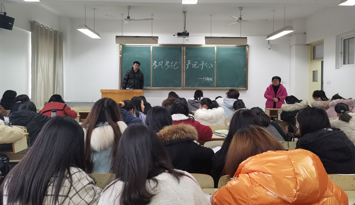 为严肃考风考纪,强化诚信考试意识,创建优良院风学风,推动校园文明建设。根据学校文件规定及文学与传媒学院期末及寒假学生教育管理工作专题会要求,2020年1月2日—8日,文学与传媒学院组织各班相继召开考风考纪教育主题班会,班会由各辅导员班主任主持。
