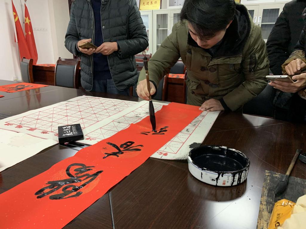 中国书法家协会会员、美术与设计学院刘振范、刘欢欢两位老师现场书写祝福。“新年纳余庆、佳节号长春”。浓浓的墨香、大红的春联洋溢着喜气,两位老师挥毫泼墨,笔起勾画,行云流水,一个个福字、一副副春联在阵阵叫好中大笔挥就。“养浩然正气,极天地大观”。马克思主义学院教师们围在桌前,现场领福,争相求写“私人定制”的春联。