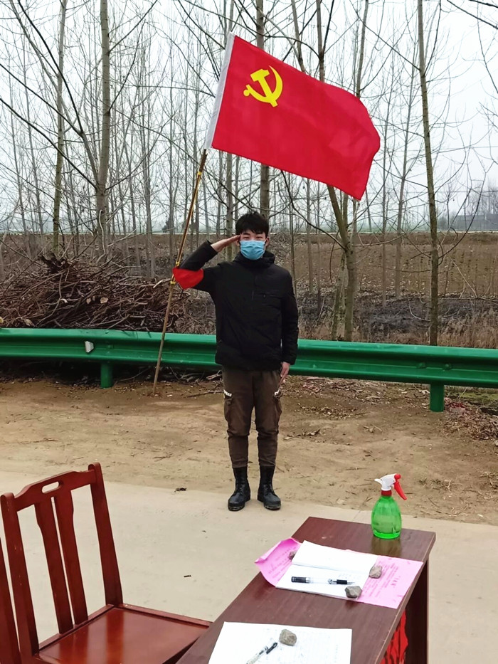 2018级金融工程班刘猛同学是一名退役军人,在校期间积极参加各类志愿服务活动。面对当前疫情,他在大年初二就投入到家乡安徽省太和县双浮镇前进村的防控新型冠状病毒感染肺炎志愿服务活动中。前期他积极配合村干部制作宣传标语,并负责张贴。目前负责在乡村主要道路上进出人员的劝阻和管控,每天5点半起床,6点半准时到达志愿服务台开始一天的工作。当村民问他为何放弃假期参加志愿活动,他说:“当前新型冠状病毒感染肺炎疫情防控处于关键时期,配合做好疫情防控工作,是我们每名青年义不容辞的责任,我作为一名入党积极分子和一名退役士兵,我有责任更有义务保护这个生我、养我、育我的地方。”