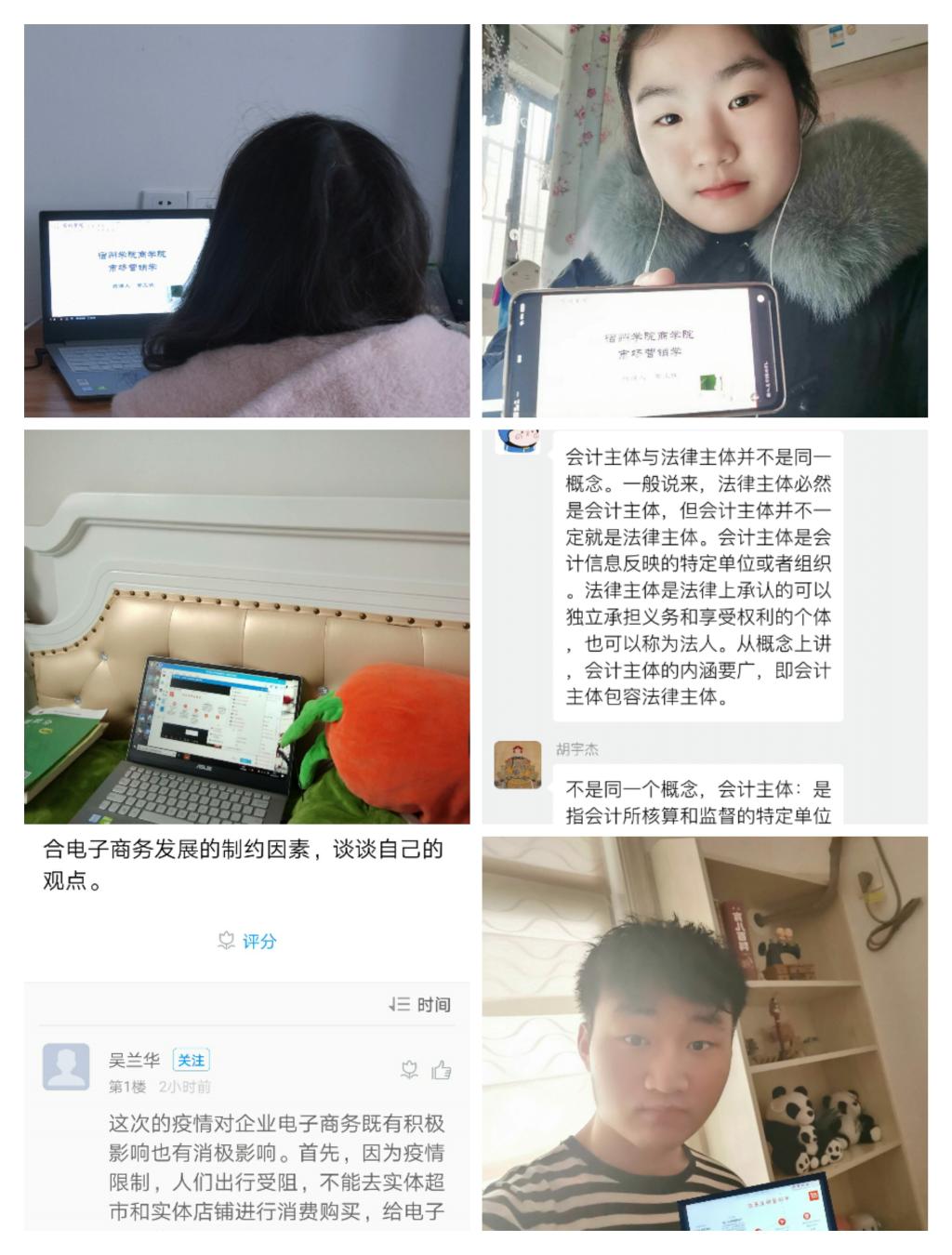 由于学院的提前部署,各位辅导员、授课老师提前组织,全院只有4名同学因设备及网络信号问题,没能够按时参加线上学习,其授课老师也已通过其他方式将课程资料发送到学生手上。上课过程中,学生学习认真,师生互动频繁,学生普遍比较喜欢线上授课的模式。大部分同学都表示想念老师,想念学校,希望疫情尽快结束。也都表示返校前一定按照要求按时参加线上学习,返校后会更加珍惜课堂学习机会,加倍努力学习。