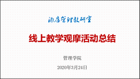 第五周,公开示范观摩周。为推动高校信息化教学深入发展,完善学院教师线上教学能力发展水平,进一步加强教师间学习交流,提升线上教学质量,根据《大赢家体育开展2019-2020学年度第二学期“教师课堂教学能力提升”活动的通知》教务处发〔2020〕8号要求,各教研室开展形式多样的线上教学观摩活动,如酒店管理教研室胡梦姚以QQ直播为主要形式进行授课、旅游管理教研室陈鹏老师主讲的在线示范课《旅游经济学》观摩活动在QQ课堂直播进行,各教研室老师认真进行课堂观摩,随后开展公开示范课程观摩研讨活动,就在线教学技术、教学手段、教学内容进行了分享和探讨。此次公开示范观摩周活动生动活泼、印象深刻、很有意义,对教师在线教学起到了很好的引领示范作用。
