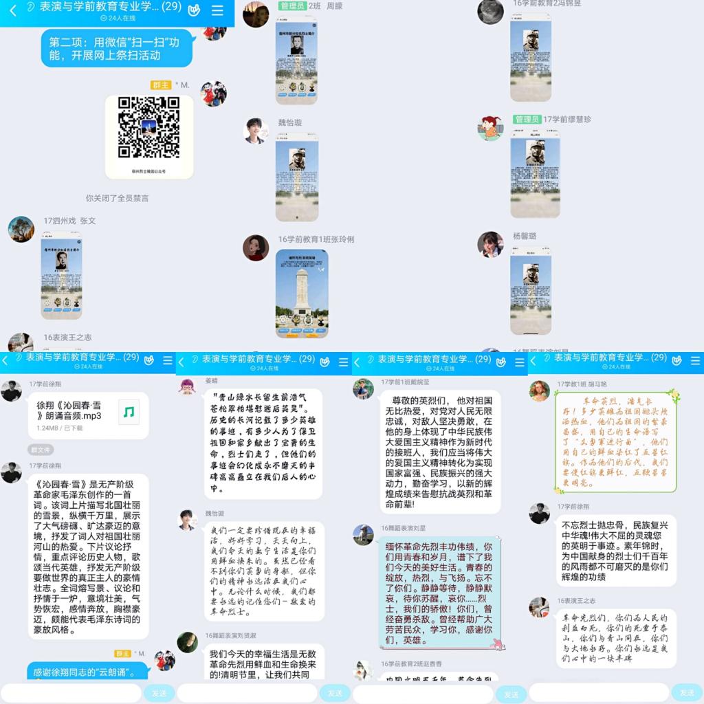 4月2日,音乐学院表演与学前教育专业学生党支部依托QQ群开展“致敬2020清明祭英烈”网上祭扫主题活动。活动由支部书记莫梦娴主持,支部全体成员参加了活动。