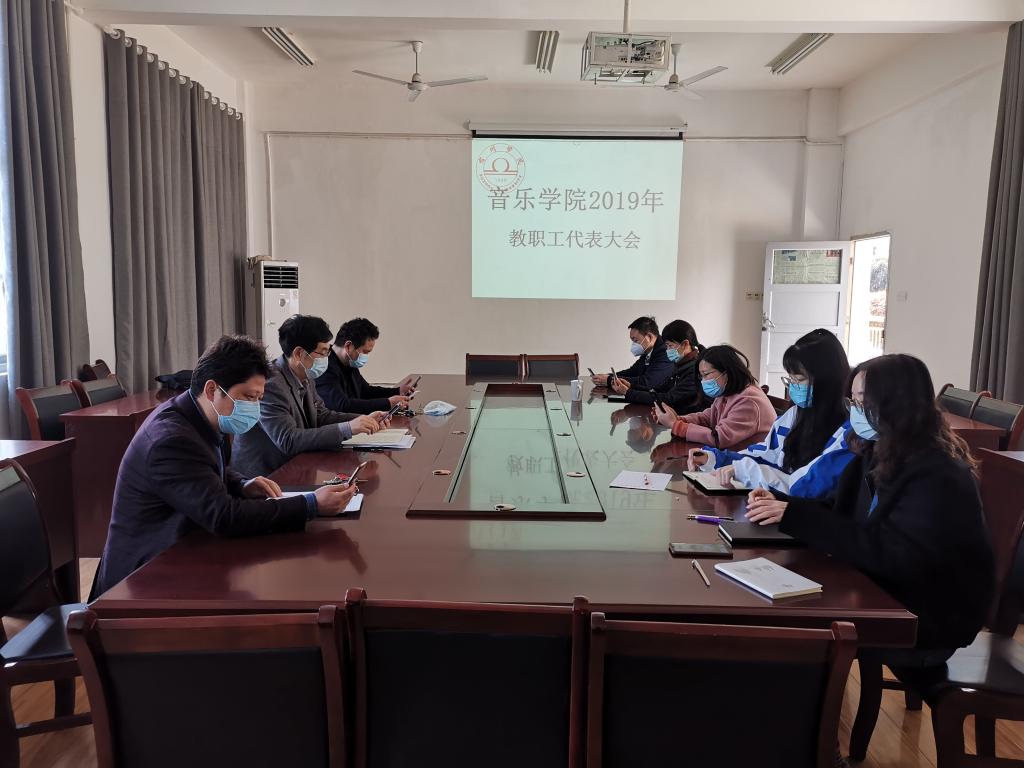 会议在庄严的国歌中开幕。会上,顾大海院长对2019年学院工作进行报告,全面回顾总结了2019年的主要工作。同时又对2020年的工作进行了规划和安排,为推动音乐学院事业再上新台阶指明了方向。学院全体教职工们分别对学院工作报告、财务报告和提案说明进行讨论。教师们充分肯定了工作报告的内容,同时也提出了中肯的意见和建议。