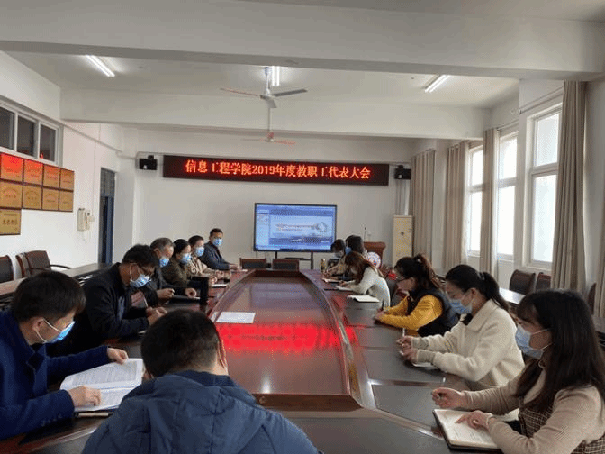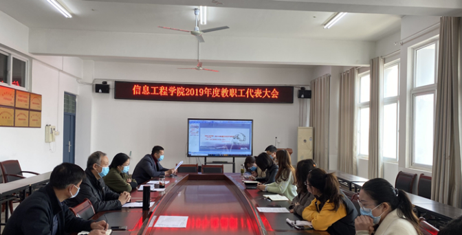 2020年4月8日上午,信息工程学院在工B315会议室召开2019年教职工代表大会。会议由信息工程学院党总支书记路红梅主持,院长宋启祥和院分工会主席张万礼到会做报告,教职工代表大会全体代表参加会议。