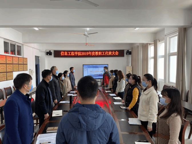 会议在庄严的国歌中开幕。会上,宋启祥院长分别从学院党建方面、发展方面、突出实绩、存在不足四大方面对2019年学院工作进行报告,全面回顾总结了信息工程学院2019年的主要工作。同时对2020年的工作进行了新的规划,强调将始终坚持地方性、应用型办学定位,继续抓落实、重实干、办实事、求实效,努力形成团结协作、积极向上、干事创业、风清气正的学院班子形象。