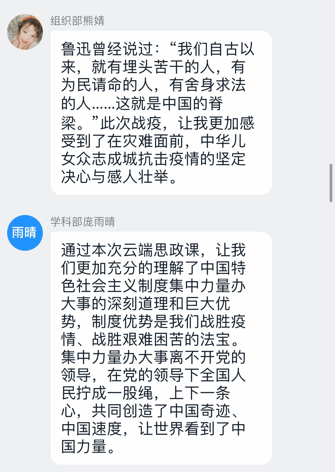 本次“全省大学生同上一堂战‘疫’思政大课”不仅塑造了大学生健康积极的心理,发挥高校思政课落实立德树人根本任务的关键课程作用,还引导大学生传承和弘扬爱国主义精神,增强中国特色社会主义道路自信、理论自信、制度自信、文化自信。