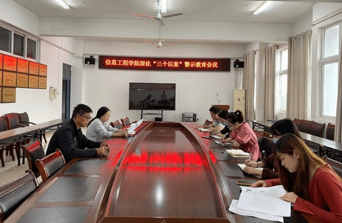 5月25日上午,信息工程学院在工B315会议室召开了深化“三个以案”警示教育会议。会议由党总支书记路红梅主持,党总支委员和各党支部书记参加会议。