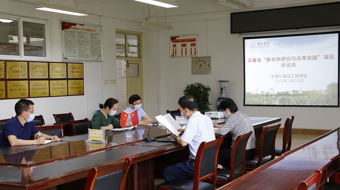 2020年5月26日下午,生物与食品工程学院召开安徽省“新农科研究与改革实践项目”论证会,生工学院教学分委会成员参加论证,高贵珍院长主持会议。