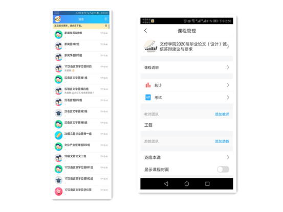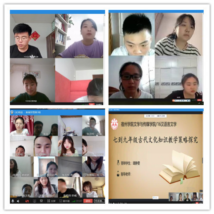 文传学院2020届毕业论文(设计)线上答辩共分为15个小组,每个答辩小组建立一个专门的QQ群,评委老师在东区答辩现场开启群视频通话功能,学生线上答辩如需演示,要开启分享屏幕功能。为了保证线上答辩平台操作规范,学院提前一周将演示视频及答辩所需材料进行共享。教学秘书通过学习通平台录制了一节以“文传学院2020届毕业论文(设计)诚信答辩建议与要求”为主题的微课,要求所有答辩学生参与学习,提前熟悉答辩过程每一个环节的流程与要求。同时每一个答辩小组指定一名老师为技术管理人员,提前一天做好师生技术操作培训,确保答辩顺利进行。