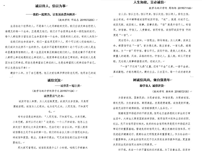 本次征文比赛的开展,增强了同学们的诚实守信意识,促进大学生在人生道路中坚定理想信念,怀揣一颗感恩的心,脚踏实地,在砥砺奋进中放飞青春梦想,书写人生华章。