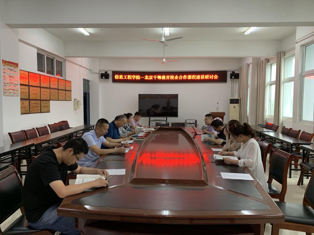 2020年6月10号上午9点,信息工程学院在工B 315召开校企合作课程建设研讨会,邀请北京千锋教育企业专家参与研讨。信息工程学院院长宋启祥、党总支书记路红梅、副院长吴孝银、实习实训中心主任潘正高、党务秘书张万礼、教学科研秘书徐旭、网络工程教研室主任姜飞、部分专职辅导员和北京千锋的专家参与会议。