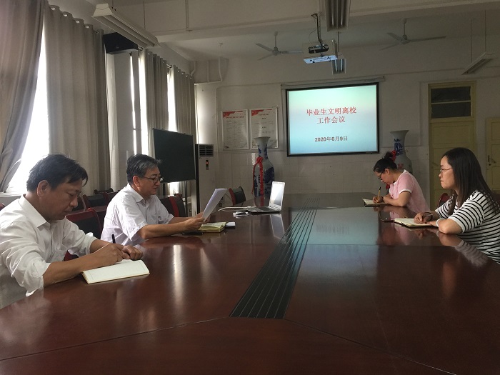 会上,徐基贵宣读了学校《大赢家体育做好2020届毕业生文明离校工作的通知》,对2020年毕业生文明离校工作进行了具体安排。