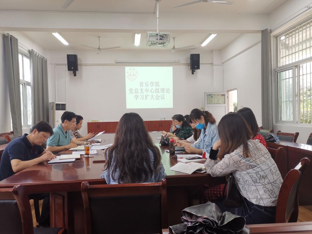 2020年6月16日,音乐学院在艺术楼一楼会议室召开党总支中心组理论学习扩大会议,领导班子成员、党总支委员会成员、各党支部书记及党员教师参加会议,会议由党总支书记陈述立主持。