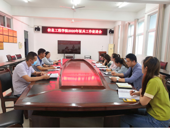 征集更多优秀大学生参军入伍,是新时代强军兴军的必然要求,为贯彻上级兵役机关的要求,推进学院征兵工作的开展,信息工程学院党总支于2020年6月17日上午在工科楼B315会议室召开了2020年征兵工作促进会。会议由党总支书记路红梅主持,党总支副书记吴翠华、副院长吴孝银、党务秘书张万礼和全体辅导员参加了会议。