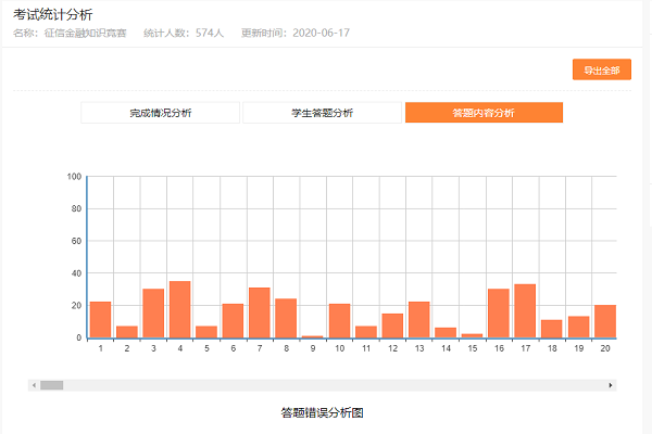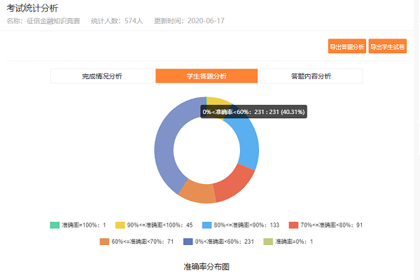 此次活动围绕着“树诚信风尚,做自强青年”的主题采取线上竞赛的模式。活动开始时,同学们积极踊跃的报名活动并在易班优课平台上进行金融知识考试。在考试期间,同学们不仅展现了充足的知识储备,用充满智慧的大脑一路过关斩将完成一题又一题,同学们极高的正确率凸显了当代大学生有着正确的人生观、世界观、价值观,突出了社会主体核心价值观。本次知识问答活动在同学们经过激烈的竞争后,以分数优先和时间优先的原则进行排名,由活动相关负责人在“大赢家体育信息工程学院”微信公众号及活动群公布了获奖名单,校学生资助管理中心在易班平台、新闻网及学生处公众号进行宣传公示,本次活动完美谢幕。