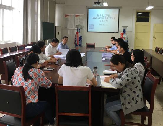 为进一步贯彻落实学校对于线上教学工作要求,规范本科毕业论文(设计)的运行和管理,确保本科生毕业论文(设计)质量。根据学校统一部署安排,2020年6月18日上午,化学化工学院在实验楼A401会议室,开展2020届本科生毕业论文(设计)自查工作。学院成立了由副院长史洪伟任组长,教研室主任、教学科研秘书、实训中心主任等为成员的检查组。