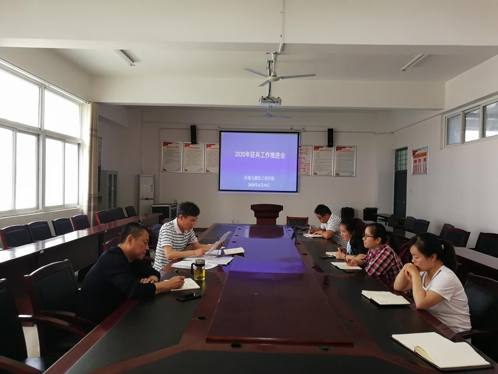 6月19日上午,环测学院在工科楼会议室召开2020年征兵工作推进会。会议由党总支书记袁新田主持,党总支副书记胡冰、全体辅导员参加了会议。