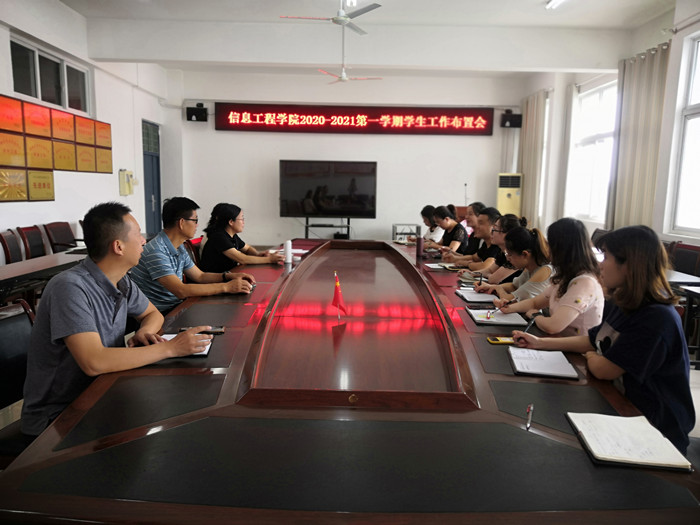 为切实做好疫情防控期间学生秋季入学教育管理工作,8月25日上午,信息工程学院在工B315会议室召开2020-2021第一学期学生工作布置会,会议由信息工程学院党总支书记路红梅主持,党总支副书记吴翠华、党务秘书张万礼以及全体班主任、辅导员参加了会议。