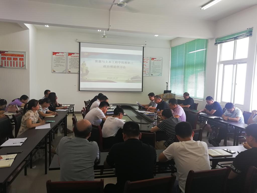8月28日上午,资源与土木工程学院在三楼会议室召开政治理论学习会,认真学习贯彻习近平总书记视察安徽重要讲话精神。党总支书记刘领主持会议,全体教职工参加学习。