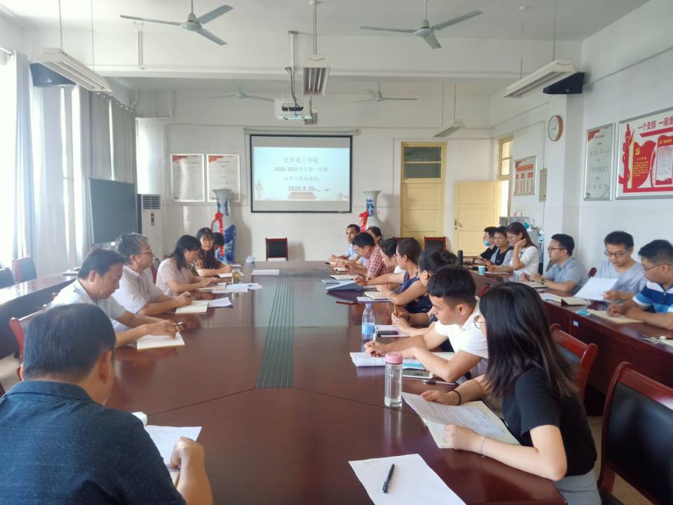 8月28日上午9:00,化学化工学院在学院会议室召开2020-2021学年第一学期开学工作布置会,会议由化学化工学院院长王红艳主持。