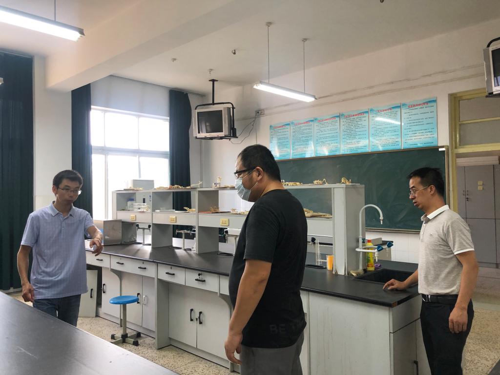 为保障新学期实验(实训)室的安全运转以及各实验、实训课程的顺利开展,生工学院于2020年8月28日下午,由张兴桃、王海潮、孔德卉和王非组成的检查小组对各实验室的安全、卫生情况进行了全面的检查。