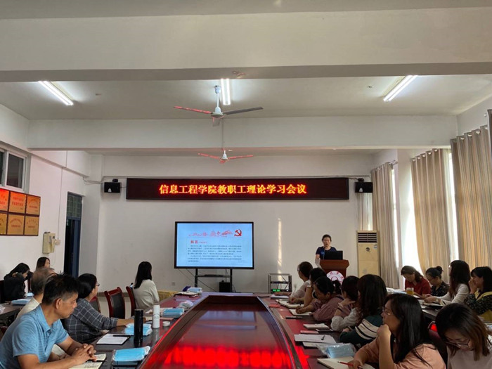 9月23日下午,信息工程学院于工B315会议室召开教职工理论学习会议。会议由党总支书记路红梅主持,信息工程学院副院长吴孝银做汇报,全体教职工参加了会议。