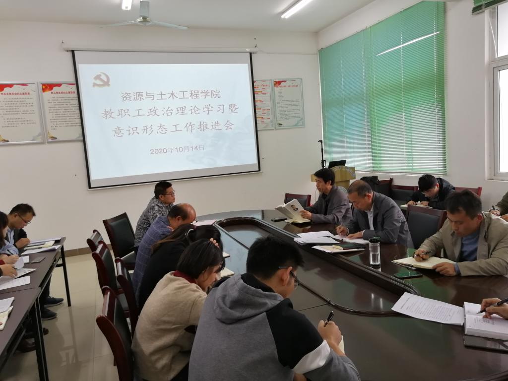 10月14日下午,资源与土木工程学院在三楼会议室召开全体教职工理论学习会,深入学习《习近平谈治国理政》第三卷,传达学校意识形态工作会议精神,部署学院意识形态工作。学习会由党总支书记刘领主持,全体教职工参加学习。