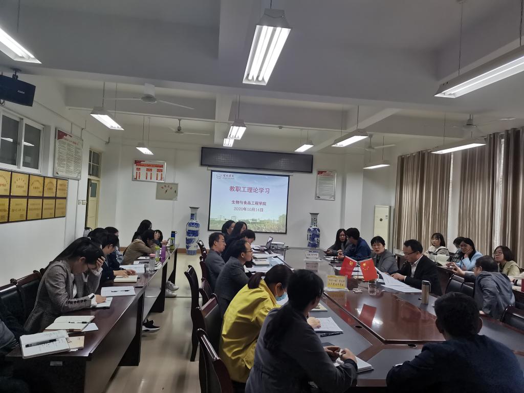 10月14日下午,生工学院在实验楼A206召开教职工理论学习会,学院党总支书记赵亮主持会议,全体教职工参加。