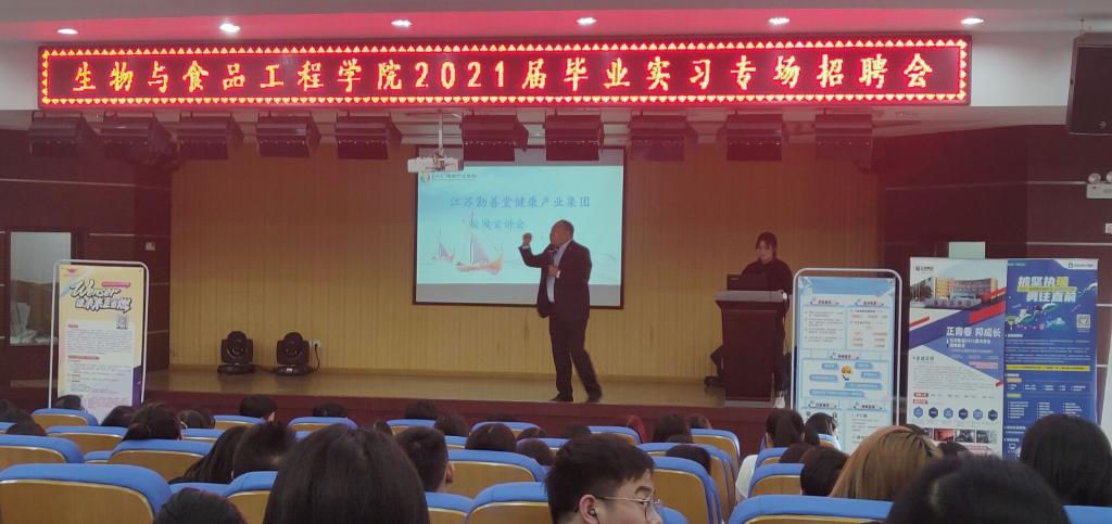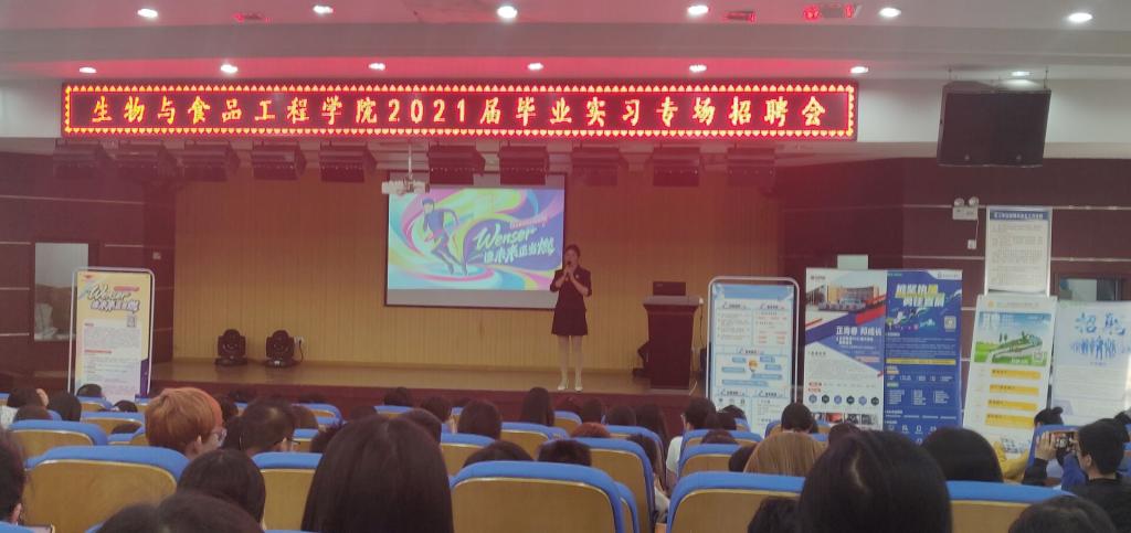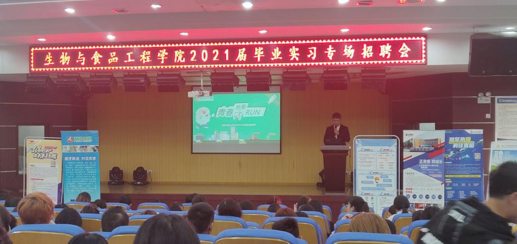 为做好学院2020届毕业生实习就业工作,搭建良好的就业平台,10月22日下午,生物与食品工程学院2021届毕业生实习就业供需双选会在招聘大厅举行。生工学院院长高贵珍、党总支书记赵亮、副院长张兴桃、13家企业代表及2021届生工学院全体毕业生参加了此次会议。