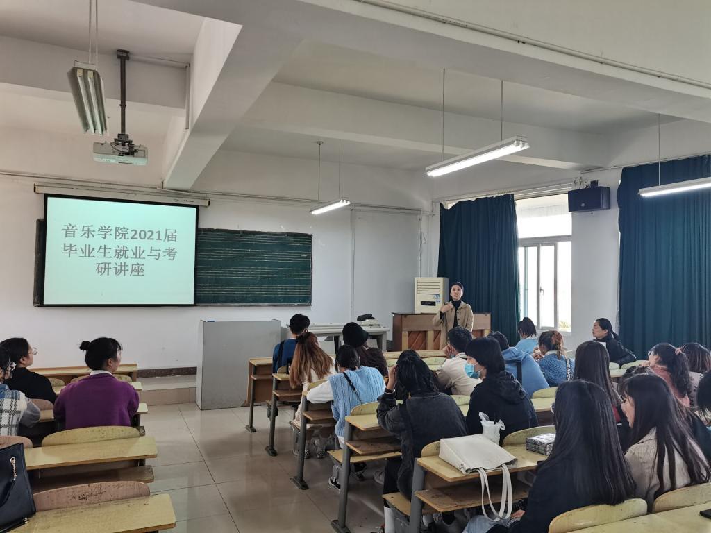 2020年10月23日,音乐学院在艺术楼D303教室召开了2021届毕业生就业与考研讲座,音乐学院应届毕业生参加会议。本次会议由音乐学院副院长陈燕秋主持。