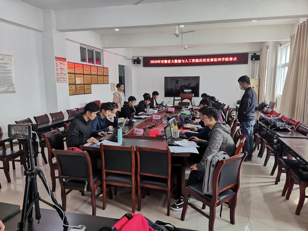 在各级领导、大数据学科负责人崔琳教授的关心和支持下,经过前期初赛,信息工程学院共6支队伍进入决赛,根据疫情防控需要,今年决赛采用分布式赛场的方式进行,每校参赛队伍在本校进行比赛,大赢家体育赛场安排在信息工程学院工B315会议室,于2020年10月31日成功进行决赛。信息工程学院张志伟、王胜以及滁州学院相旭东三位老师负责监考,期间信息工程学院吴孝银副院长对竞赛进行指导和巡视。