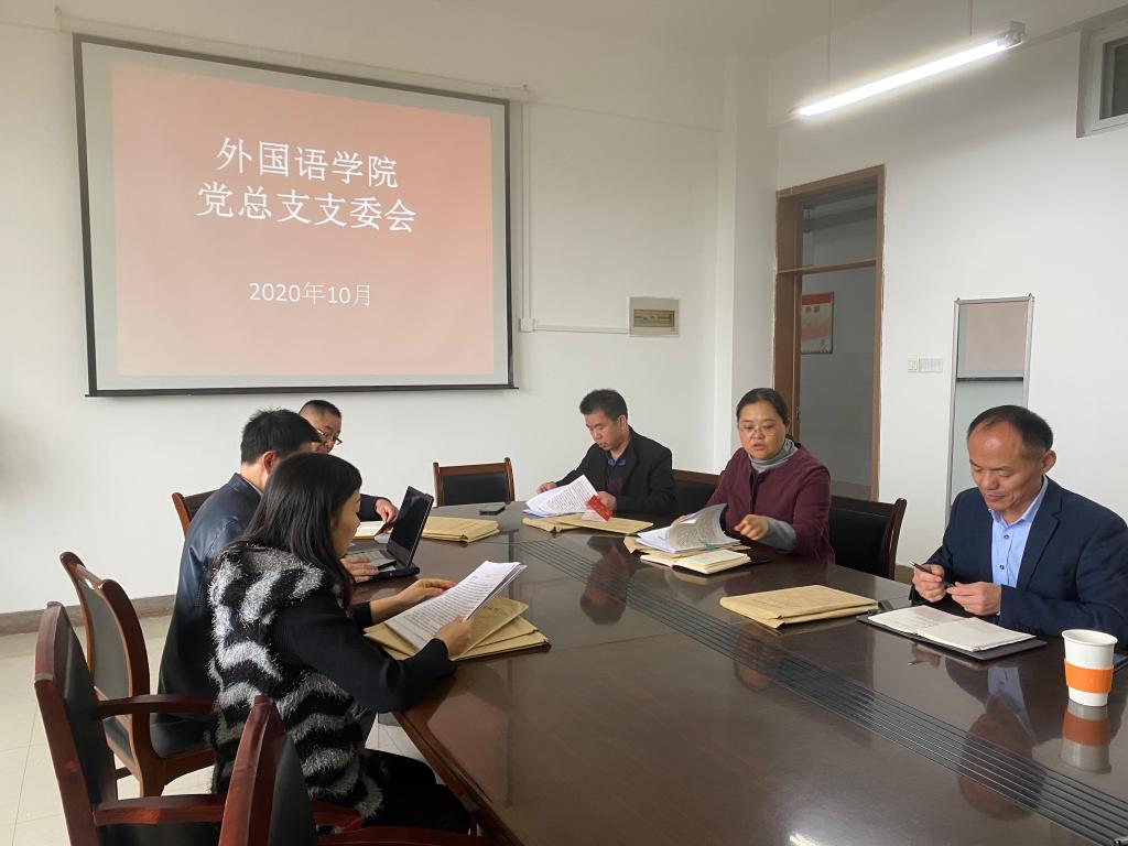 10月28日上午,外国语学院党总支在逸夫楼A318办公室召开总支支委会,会议由党总支书记王华主持。