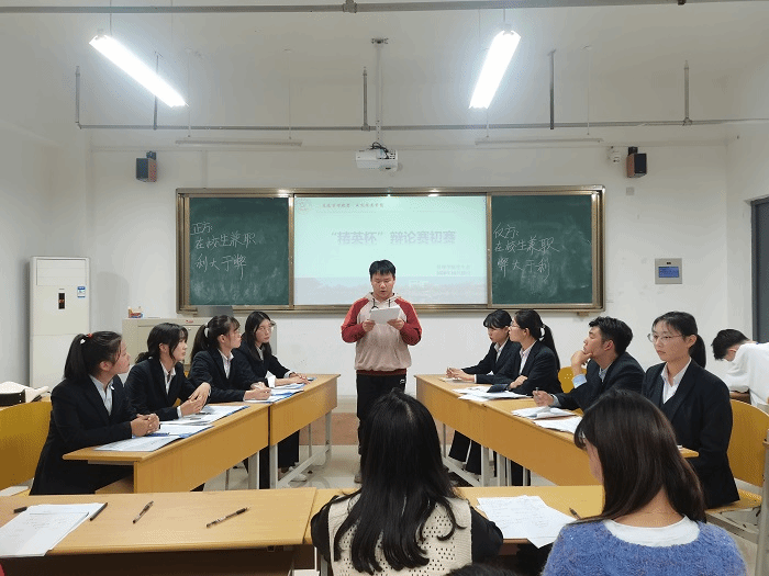 为丰富同学们的课外生活,培养他们的思辨能力和语言表达能力,10月22日至11月4日,管理学院于实习实训楼举办“精英杯”辩论赛。此次活动由院学生会主持,各班辩论选手参加。