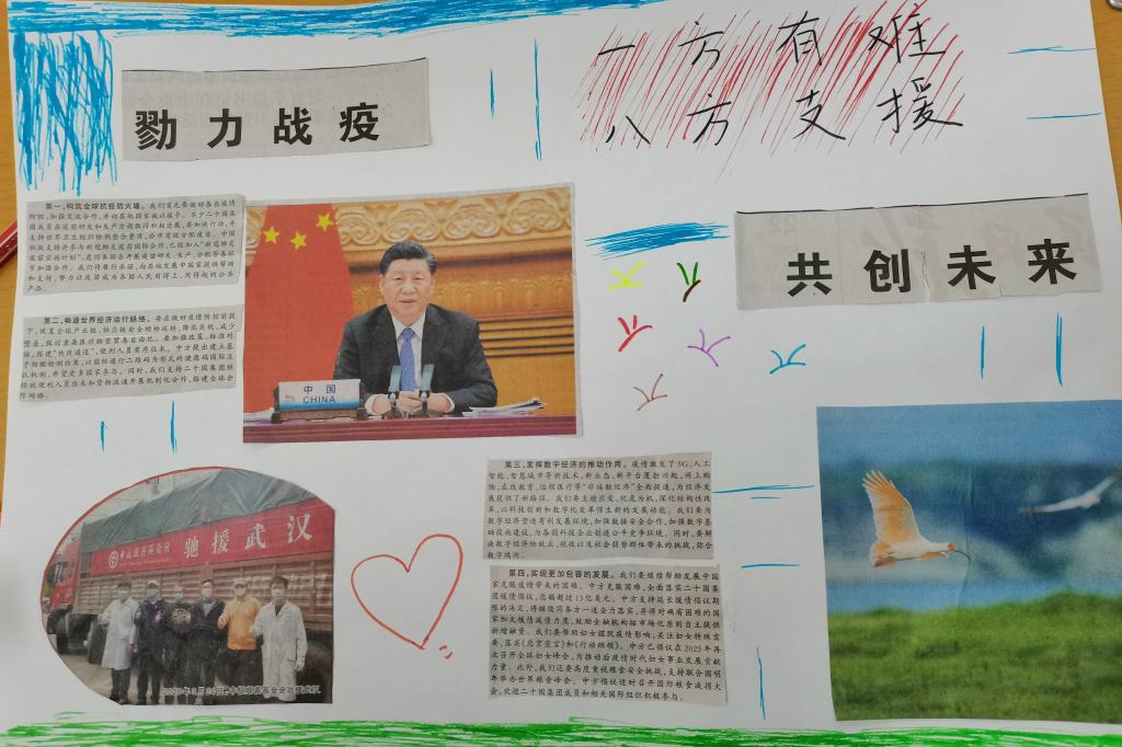 比赛共有十四组同学参加比赛。首先,由工作人员为参赛选手们分发剪刀、报纸、白纸和画笔,在主持人简单介绍规则后,比赛正式开始。各组同学大胆构思,自由发挥。选手们分工明确,剪报、排版、粘贴、绘画,分工明确,有序进行。随后,各组人员依次上台讲述作品的设计理念,同学们精彩的演讲赢得评委和观众们的阵阵掌声。最后,主持人宣布比赛结果,获奖人员进行合影留念。