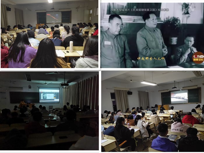 此次主题团日活动内容丰富、形式多样,具有深刻的教育意义。2018级新闻学团支部带领全班同学欣赏《中国人民志愿军战歌》,学习习近平总书记在纪念中国人民志愿军抗美援朝出国作战70周年大会的讲话;2018级文化产业管理团支部组织全体团员观看了《抗美援朝保家卫国》纪录片以及习近平总书记在中国人民革命军事博物馆的参观历程;2018级汉语言文学一班团支部全体团员一起学习四史,观看历史发展进程,并交流感悟体会;2018级汉语言文学二班团支部通过班会形式学习十九届五中全会精神,交流心得体会;2019级汉语言文学一班团支部组织全班同学参加党史、改革开放史、新中国发展史知识竞赛;2019级汉语言文学二班团支部组织团员制作相关视频或围绕主题写一篇感想;2019级文化产业管理团支部组织了“致敬抗美援朝,争做时代新人”的宣讲活动;2019级新闻学团支部组织同学们线上观影,并通过视频连线交流观影体会,加深对国家的深厚情感;2020级新闻学一班团支部组织同学们观看抗美援朝纪录片,向抗美援朝志愿军们致敬;2020级新闻学二班团支部组织同学们观看了相关主题纪录片,全面了解了小康社会的意义和奋斗过程;2020级文化产业管理团支部组织同学观看了抗美援朝影片,理解抗美援朝精神的内涵;2020级汉语言文学专升本团支部组织观看了相关视频,学习了十九届五中全会精神。