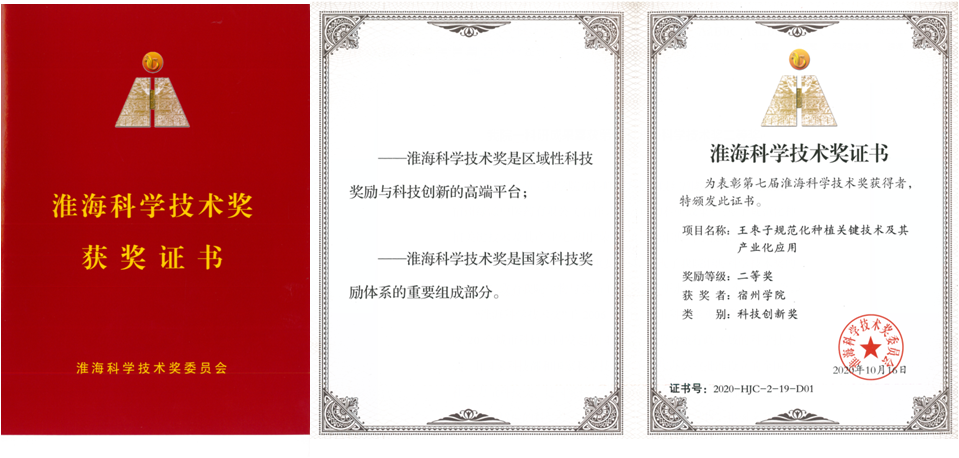 由生物与食品工程学院翟科峰副教授、段红副教授、曹稳根教授和宿州绿源中医药有限公司合作共同完成的科研成果“王枣子规范化种植关键技术及其产业化应用”荣获“第七届淮海科学技术奖”二等奖,这是我校产学研合作中又一重要成果,实现了学校淮海科学技术奖的突破,标致着我校生物与食品工程学院科研水平又上一个新的台阶。