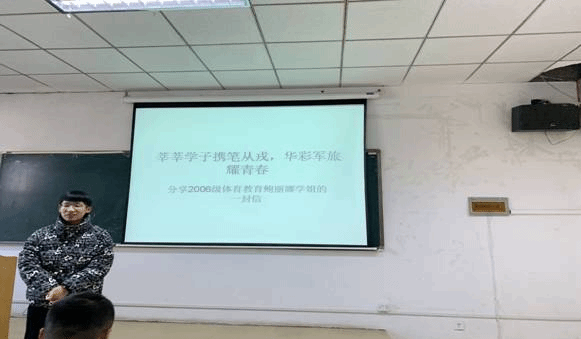 收到信件后,在体育学院党委的部署下,体育学院各个班级开展了以“莘莘学子携笔从戎,华彩军旅耀青春”为主题的班会。同学们读了这封信后都觉得自己收获很大,要努力拼搏,脚踏实地,拼搏是成功的阶梯,梅花香自苦寒来。