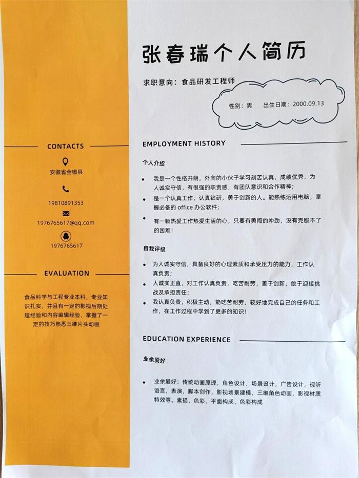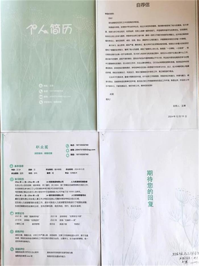 本次比赛以“展现自我、体验求职、成功就业”为主题,指导学生做好职业规划同时丰富学生的大学生活,帮助学生提高职业素质和求职能力,认识到规范个人简历的重大意义。首先,在简历收取完成之后,工作人员严格按照简历制作设计大赛评分标准,进行初次选拔,在选拔过程中,分组配合完成挑选简历的任务。挑选外观设计精致,封面设计美观,主题明确,内容简洁且书信格式标准的优秀简历供老师挑选。比赛选拔当天,秉着公平公正的原则对初选作品进行了严格的筛选与评判,挑选出了文字工整大方,内容简洁真实,求职意向明确,且有一定独特性和创造性的作品。最终,经过评选18食品质量与安全汤萌等4人获得一等奖;19生物技术2班彭慧等8人获得二等奖;20食品质量与安全胡若林等14人获得三等奖。
