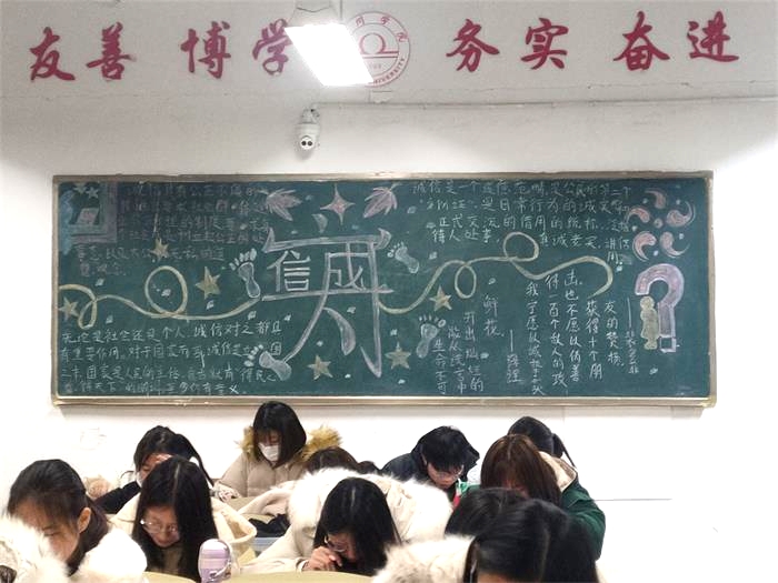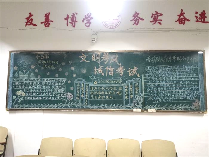此次黑板报评比活动,有利于提高学院的学风建设,使同学们进一步了解考风考纪,认识到考试的严肃性和违纪的危害性,创造良好的学习氛围。同时也希望同学们能够积极备考,诚信应对考试,考出水平,考出风格,为本学期的学习生活交上一份满意的答卷。