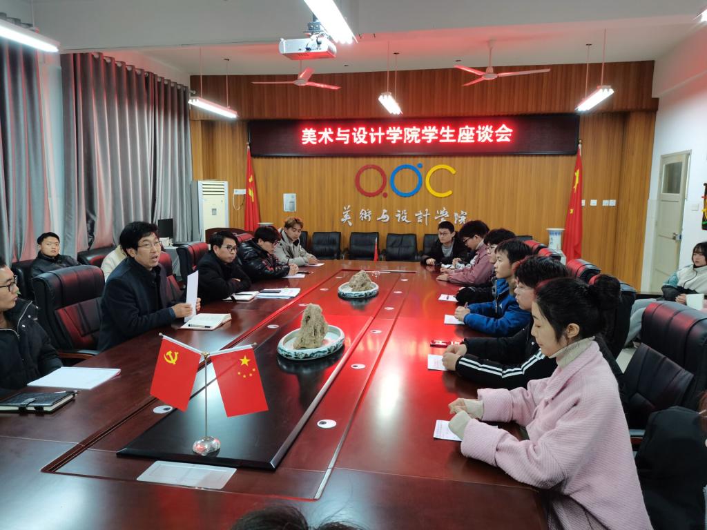为进一步开展好美术与设计学院学生工作,12月23日,美术与设计学院在院会议室召开了学生代表座谈会。此次座谈会的主要目的是加强学院与学生之间的联系与交流,通过学生的意见反馈,了解学生动态,更好的做好学生工作。参加此次会议的有院党委书记陈述立、副院长许兴海,18-20级各班代表,陈述立主持会议。