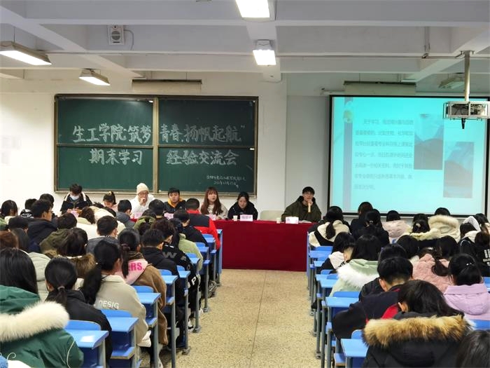 12月25日晚7点,为使同学们全面了解期末考试,用科学的方法来备考、迎考,缓解焦虑和压力,同时也为进一步营造期末学习氛围,生工学院于教学楼B201举办2020年“畅谈经验,交流分享”期末学习经验交流会,2020级全体学生参加。