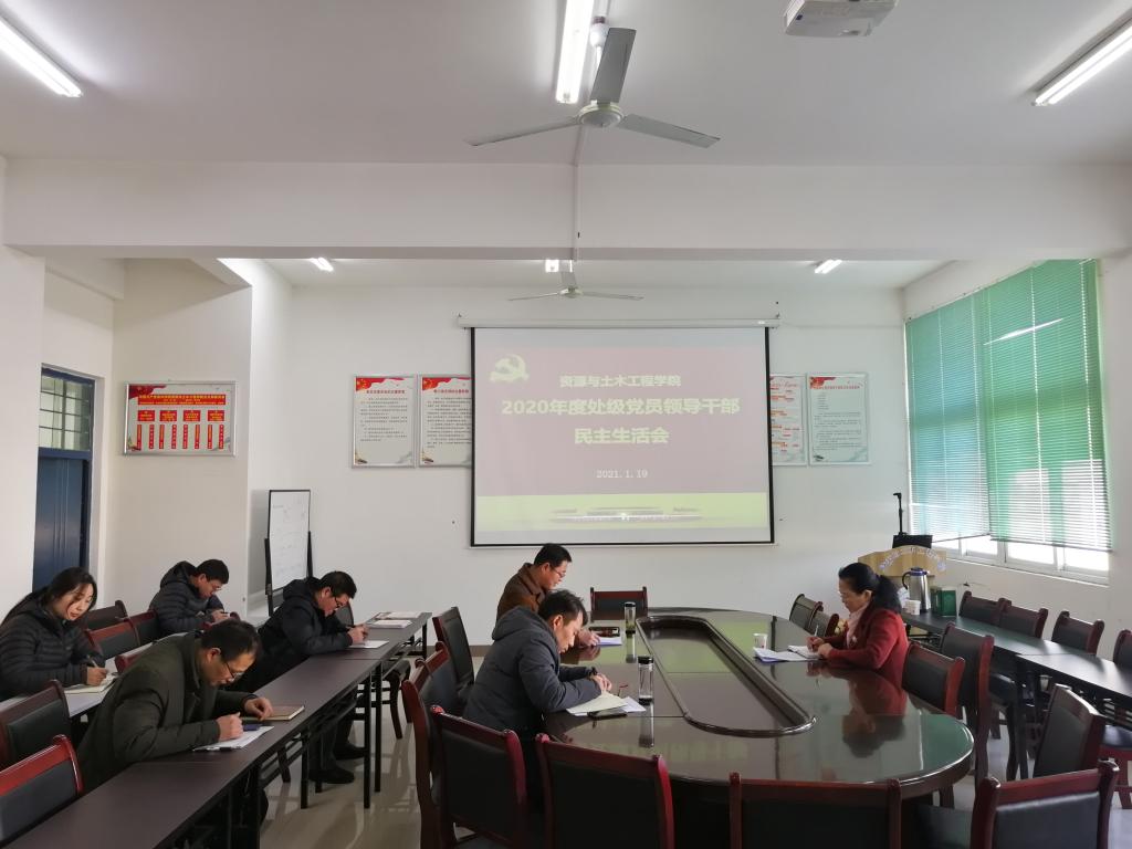 根据中共大赢家体育委员会《大赢家体育认真开好2020年度处级党员领导干部民主生活会的通知》(校党组字〔2021〕1号)要求,资源与土木工程学院于2021年1月19日在工科A楼314会议室召开了2020年度处级党员领导干部民主生活会。校党委组织部部长陈啸吟到会指导并作重要指示,资源学院班子成员、全体科级干部参会。张持堂主持会议。