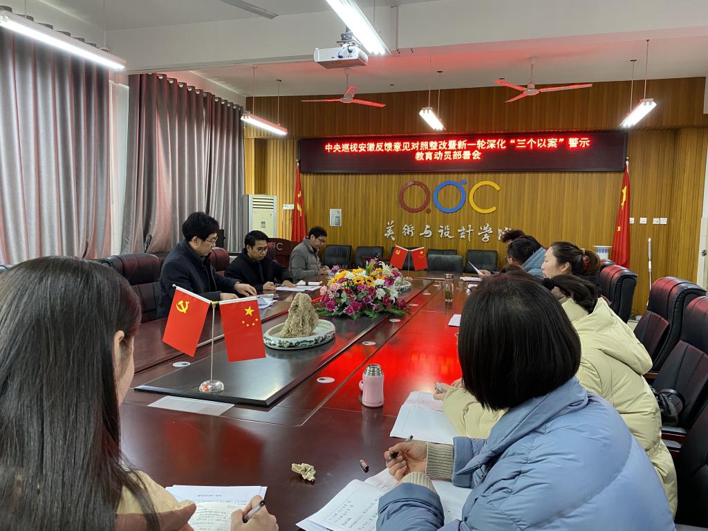 3月8日,美术与设计学院在艺术楼B402会议室召开了中央巡视安徽反馈意见对照整改暨新一轮深化“三个以案”警示教育动员部署会。会议由党委书记陈述立主持,领导班子成员、党委委员、科级干部、党支部书记、教研室主任等参加了会议。