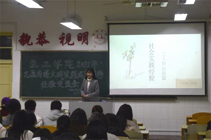 社会实践是巩固知识的必要手段,也是大学生成长成材的重要途径。为相互交流学习社会实践经验,增强志愿服务意识。3月13日晚,生工学院于实验楼A521教室举办寒假社会实践经验交流会,2019、2020级各班以及志愿者服务队全体队员参加了此次交流会。
