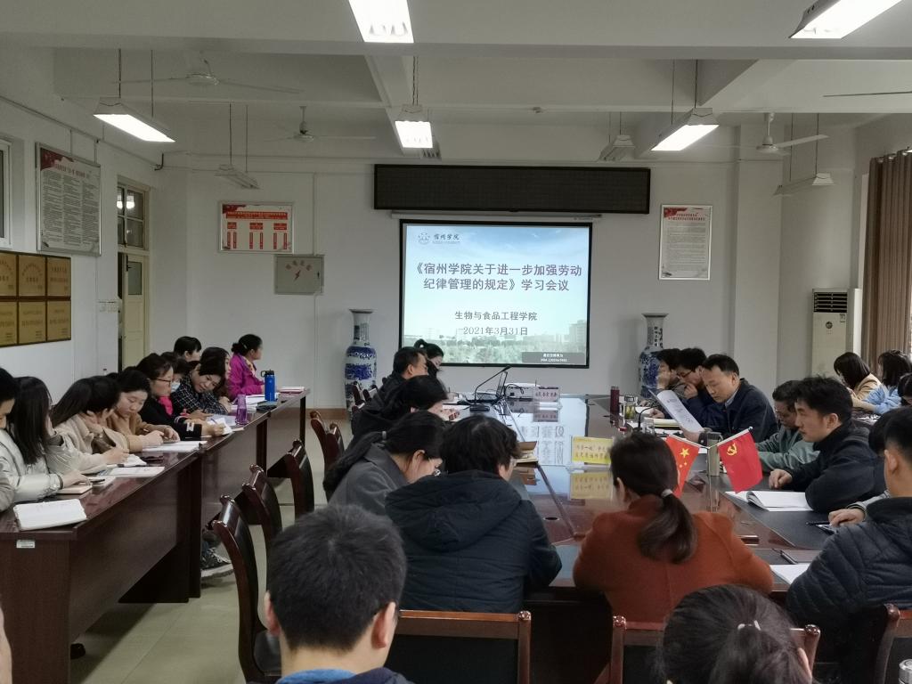 会上,赵亮解读了《大赢家体育大赢家体育进一步加强劳动纪律管理的规定》,带领学习了《中共大赢家体育委员会大赢家体育开展党建工作“找差距、抓落实、提质量”专项行动的实施方案》,对专项行动进行了具体部署。集中学习了《生物与食品工程学院党委会会议议事规则》、《生物与食品工程学院党政联席会议议事规则》。