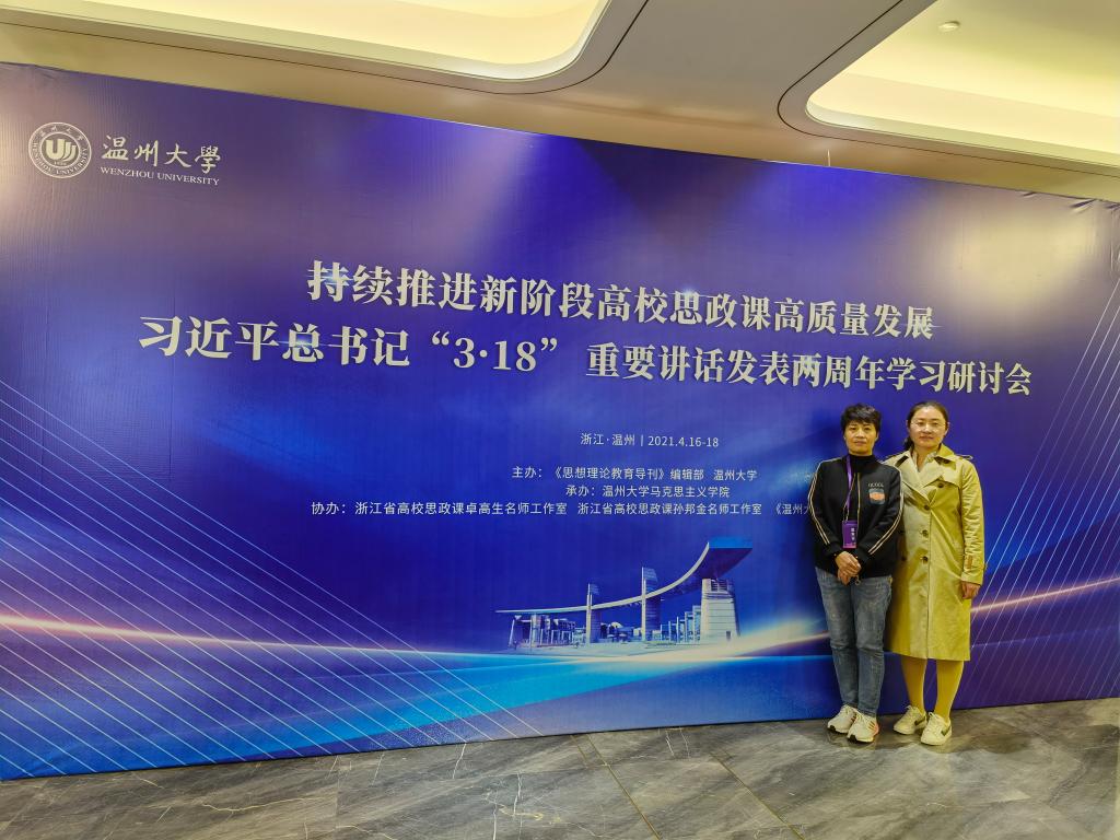 4月16日至4月18日,“持续推进新阶段高校思政课高质量发展,习近平总书记‘3·18’重要讲话发表两周年学习研讨会”在温州大学举办。我院马克思主义理论学科组成员沈玉梅、张玉霞两位教师应邀以文参会。